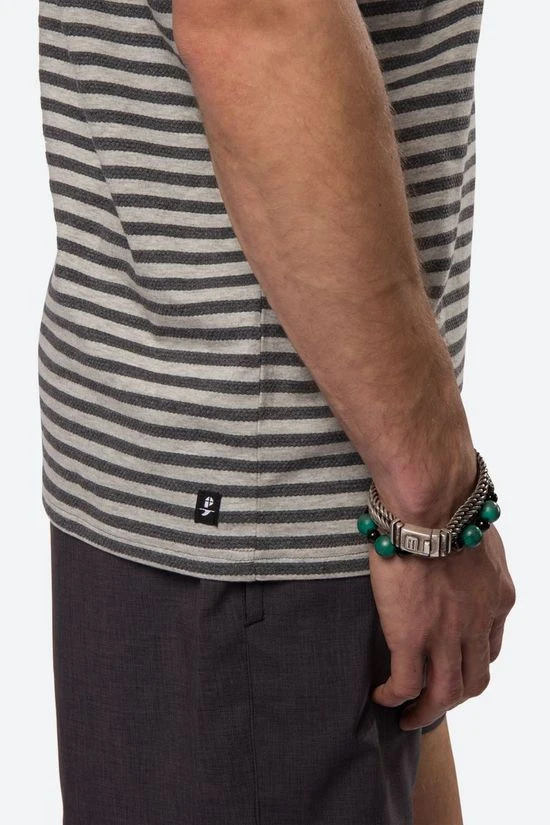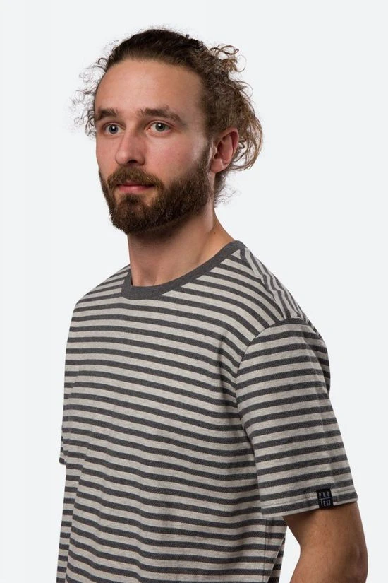 - De stof heeft een yarn-dyed gestreept patroon.