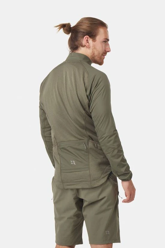 - Hybride fietstussenlaag met volledige ritssluiting en verlaagde zoom.