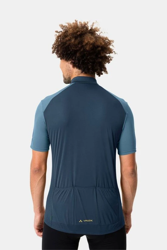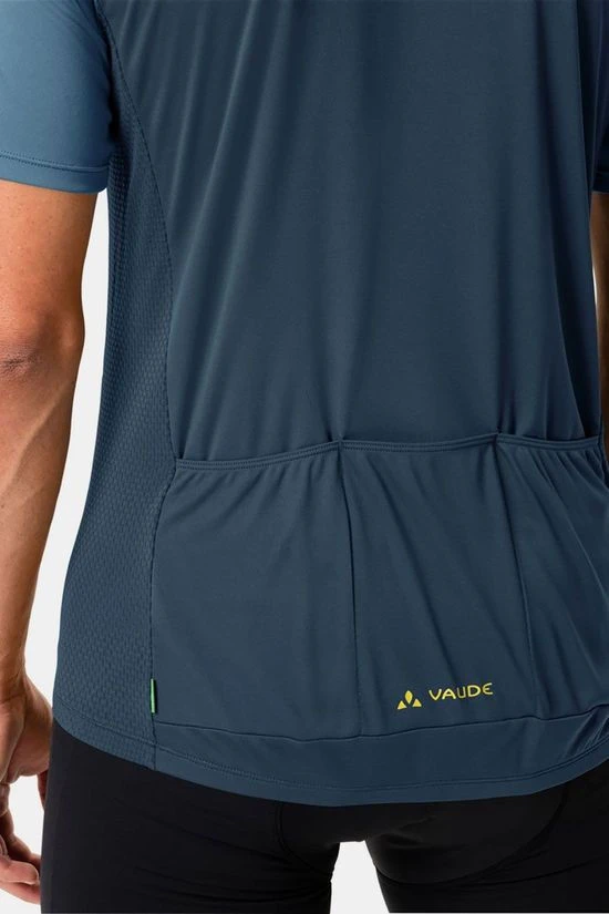 - Het Matera HZ Tricot Fietsshirt van Vaude met elastische uiteinden zit losjes op de heupen, knelt niet af.